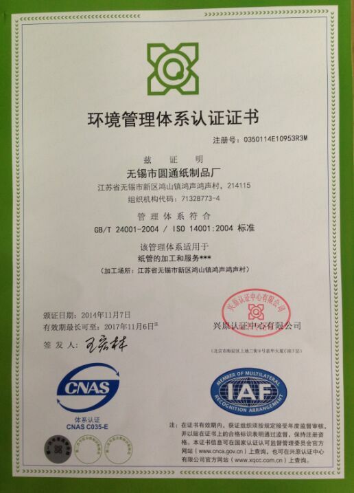 無錫市圓通紙制品廠成立于1996年,公司位于無錫新吳區鴻山鎮,是一家專業生產各種規格工業紙管、無縫紙管、電池紙套、紙吸管的紙管廠家,擁有二十年的紙管制造經驗和完整的質量管理體系,所生產的紙管廣泛用于薄膜、化纖、印刷、造紙、紡織、電子、塑料、食品、膠帶等工業用產品行業,已成為蘇錫滬地區幾十家外企的合格供應商。       無錫市圓通紙制品廠現擁有廠房28000平方米,注冊成本2000萬,員工100多人,目前擁有6條先進的螺旋管生產線和檢測設備,產能達25000噸,(大、中、小)可生產4mm-500mm內徑紙筒,快速分紙機5臺,全自動數控精切機8臺,大小烘房8間,現代化的設備為大規模生產及確保產品的質量提供了保證,同時已獲ISO9001:2015質量管理體系認證和ISO14001:2015環境管理體系認證,所生產的紙管...